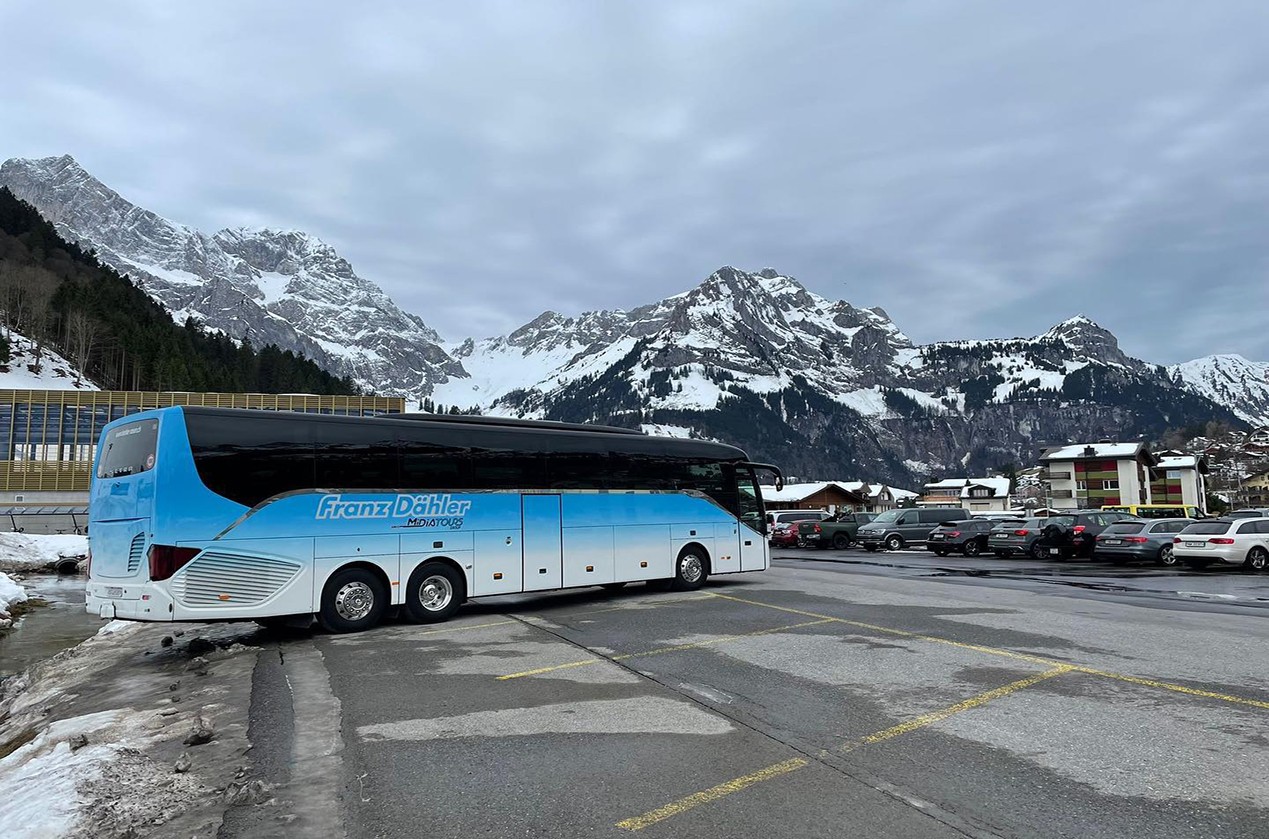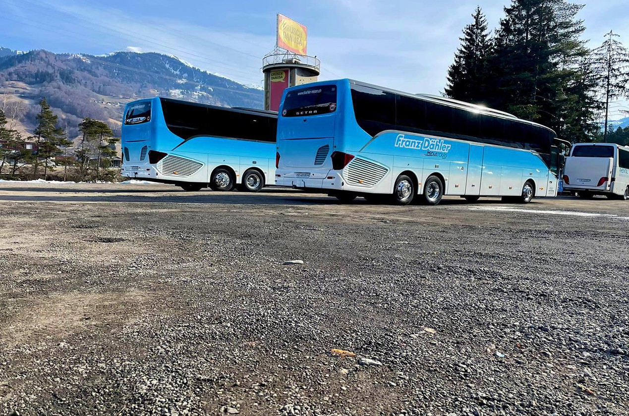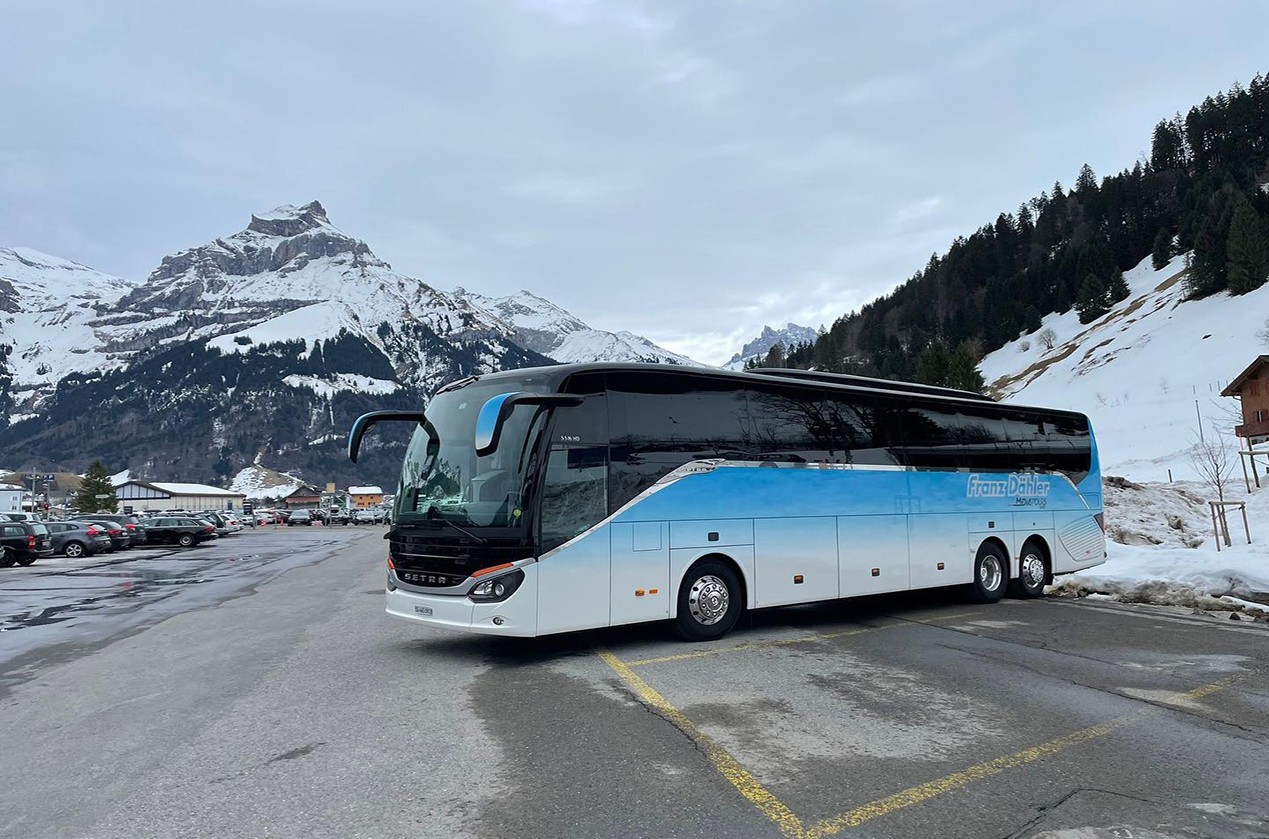 Unsere modernste Flotte von neuen Luxusklasse-Reisebussen der Marke SETRA, von dem weltweit anerkannten führenden deutschen Bushersteller, mit einem Durchschnittsalter von fünf Jahren, macht FranzDähler zu einem der zuverlässigsten Reisebusunternehmen in Europa.